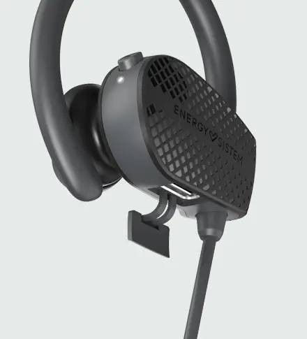 Audífonos inalámbricos deportivos diseñados con sistema de sujeción Secure-Fit que se ajusta perfectamente a tus oídos y proporciona una fijación perfecta durante tus sesiones de entrenamiento.